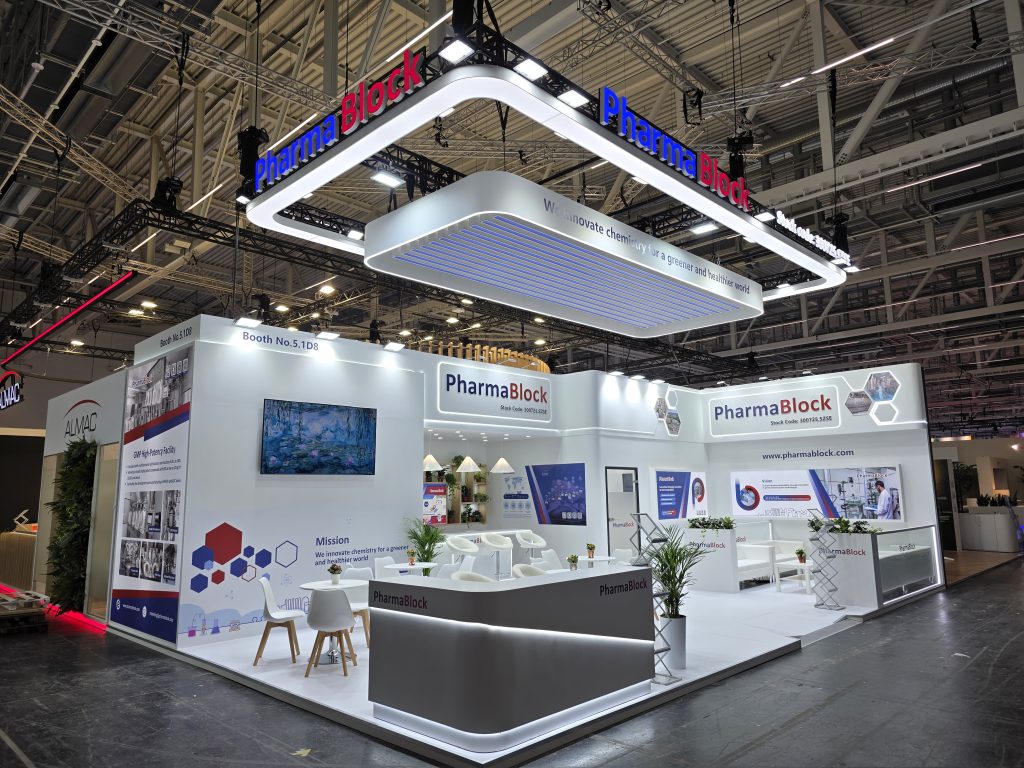 As the largest booth completed by CJ EXPO OTS at CPHI Frankfurt 2025, this 150 m² space was designed for PharmaBlock to highlight its innovative brand image.